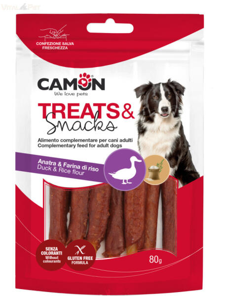 Kacsás rizses sticks 80 gramm Kacsás rizs lisztes rudak- Glutén és színezékanyag mentes étrendkiegészítő felnőtt kutyák részére. Összetétel: kacsahús 38%, kukoricakeményítő, rizsliszt 16%, hidrolizált halfehérje, szója (bab) fehérje koncentrátum, glicerin (növényi), nátrium-klorid. ADALÉKANYAGOK: tartósítószerek - ANALITIKAI ÖSSZETEVŐK: Nyersfehérje 19,77% - Nyer