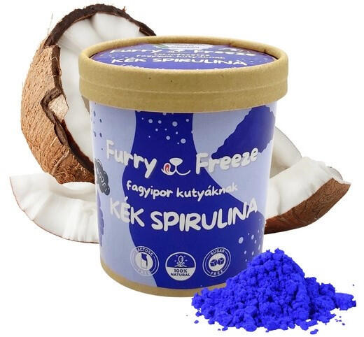 100%-ban természetes összetevőkből álló kék spirulina ízesítésű fagyipor kutyáknak. 1 doboz fagyiból 10 adag fagyi készíthető AJÁNDÉK szilikon fagyiformával! Kellemes hűsítő finomság és remek szórakozás kiskedvencednek a nyári nagy melegben. Összesen 10 ízben kapható a magyar gyártású kutyfagyi. A dobozban lévő fagyiporból 10 adag fagyi készíthető el és egy