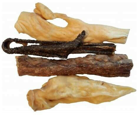 Összetétel: marhabőr 80,0%, kacsamell filé 16%, növényi melléktermék, ásványi anyagok Analitikai adatok: nyers fehérje 94,9%, nyerszsír 2,2%, nyershamu 2,1%, nyersrost 0,5%, nedvességtartalom 11,1%
