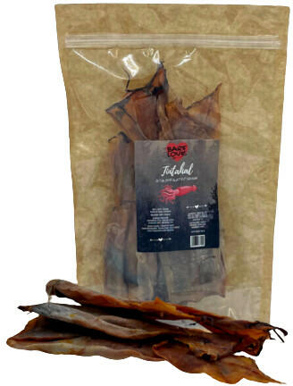 Fenntartható halászattal, vadon fogott, adalékanyagmentes, fehérjében és Omega-3 -ban gazdag, ízletes és egészséges tintahal rágóka kutyád számára. Ez az ínycsiklandozó és egészséges tintahal az Északi-tengerből vadon és fenntartható halászattal fogott lazactól származik, melynek természetvédelmi státusza nem fenyegetett, populációja stabil és összhangban van a ha