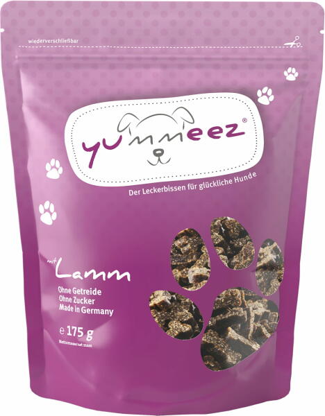 Kiegészítő táp kutyáknak Táplálkozási szempontból érzékeny kutyák számára Bárányhússal Glutén- és gabonamentes Visszazárható csomagolásban Made in Germany