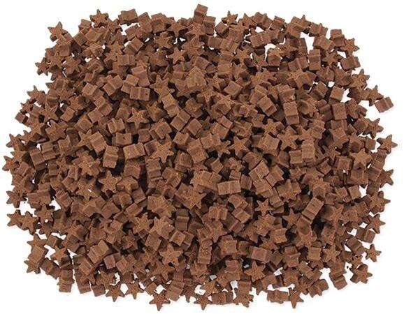 RASCO táplálék kiegészítő kutyák számára- mini csillagok kalciummal. Összetevők: gabonafélék, hús és állati eredetű melléktermékek (min. 4 % sertéshús), cukrok, zsírok és olajok, szárított savó, növényi eredetű melléktermékek. Analitikus összetevők: 12,5 % nyers fehérje, 6% nyers olajok és zsírok, 10,5 % nedvesség, 5,7 % nyers hamu, 1,1 % nyers rost.