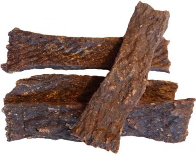 A kecskehús csíkok 100%-ban kecskehúsból készült, kb. 10-12 cm hosszú és 2 cm széles, mesterséges színezékektől és tartósítószerektől mentes abszolút természetes termék. A természetes tojásfehérjét kötőanyagként használják. A húscsíkokat könnyen össze lehetnek törni, ezért kis kutyák számára is alkalmas rágnivaló.
