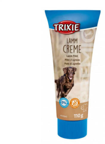 Tubusból könnyedén adagolható, rendkívül finom és egészséges bárányos csemege kutyáknak, akik különösen nagy örömmel fogadják. Segítségével könnyebben adható be nekik gyógyszer, amit ezzel a pástétommal együtt boldogan nyelnek majd le. Glutén- és cukormentes termék. Összetétel: hús és állati melléktermékek (40% bárány, 25% baromfi), burgonyakeményítő, kuko