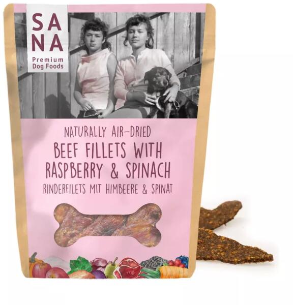 A SANADOG marhafilé málnával és spenóttal tiszta, kiváló minőségű marhahúsból és egészséges superfoodokból készült csemege kutyusod számára. A SANA saját gyárában készülnek adalékanyagok, például kukorica, búza, szója, színezékek, tartósítószerek, húsliszt vagy egyéb töltőanyagok nélkül, és óvatosan levegőn szárítják. A gondosan válogatott marhahúst