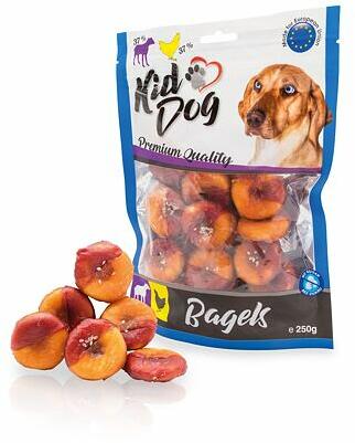 KIDDOG Bárány & Csirke Bagel 250 g, kiegészítő eledel kutyáknak finom csemege összetevők: 37% bárányhús, 37% csirkehús, rizsliszt, mogyorófehérje növényi glicerin, szezámmag súly: 250 g