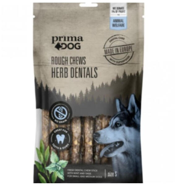 A PrimaDog kutya fogtisztító S gyógynövényekkel egy természetes összetevőkből készült rágócsont, amelyet kifejezetten nagyobb méretű kutyák számára terveztek. A termék célja a fogak és az íny egészségének megőrzése, miközben támogatja a szájhigiéniát és frissíti a leheletet. Méret: 12 cm Tömeg: 100 g A kutya fogtisztítóban olyan jótékony hatású gyógynöv