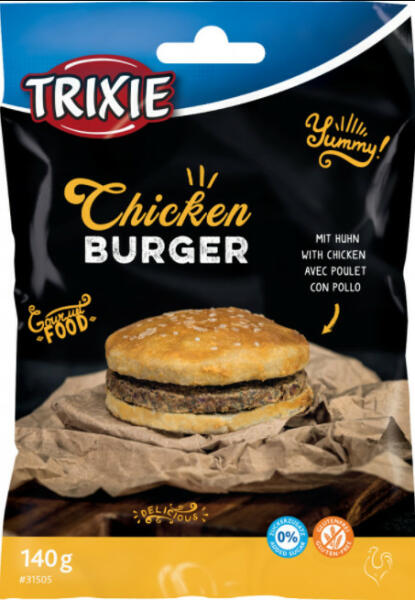 Jutalomfalat (csirke, marhabőr) kutyák részére (140g) Csirkeburger marhabőrrel Összetétel: nyersbőr, csirkehús (28%), sárgarépa, édesburgonya, spenót, tápióka keményítő, ásványi anyagok, levendula, szezámmag