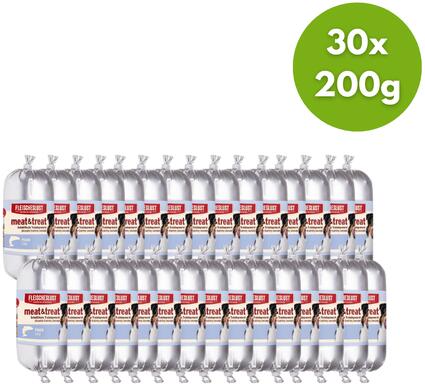 Összetétel : 65% hal ( 45% tőkehal, 20% lazac), 10% burgonyakeményítő, 7% répapép, 5% durumbúzadaraAnalitikai összetevők: Nyersfehérje: 10,3%, nyers zsír: 7,1%, nyershamu: 4,3%, nyersrost: 1,3%, nedvességtartalom: 61,4% Kiszerelés: 30x200 g A Meat and TrEat jutalomfalatok nem helyettesítik a teljes értékű táplálkozást!