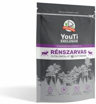 Jellemzők :- 100% rénszarvasból készült, pillekönnyű jutalomfalat egyenesen Skandináviából, visszazárható, aromazáró csomagolásban, a nyers étrend minden előnyével. - A fagyasztva szárításnak köszönhetően a termék megőrzi az alapanyag ínycsiklandó illatát és minden benne lévő enzimet, vitamint és ásványi anyagot nyersen, természetes formában. - Exkluzív, igaz