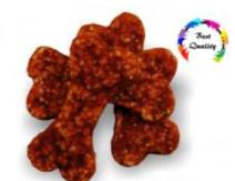 A Rasco Premium puha, ízletes jutalomfalatok tőkehalból és marhából készült szendvicscsíkok formájában mindenféle korú kutya számára 97 % hústartalommal. csemegék játékhoz vagy jutalomfalatként Összetevők: 15 % tőkehal hús, 82 % marha, 1 % glicerin, 2 % kukoricakeményítő Anali tikai összetevők: fehérje 35 %, olajok és zsírok 2 %, hamu 4 %, rostok 0,3 %, nedvességt
