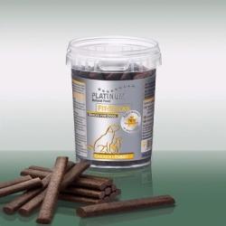 Egészségesen alacsony zsírtartalmú jutalomfalatok az étkezések közti időszakokra, melyek bármilyen korú vagy fajtájú kutyának megfelelnek. Mentes a nemkívánatos adalékanyagoktól, melyek megerőltethetik az emésztőrendszert. Csakúgy, mint a PLATINUM teljes értékű eledelek esetében, a PLATINUM Fit-Sticks Csirke+Nyúl is kiváló minőségű összetevőket tartalmaz, melyek al