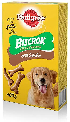 A Pedigree Biscrock egy ellenállhatatlan, ropogós keksz három ínycsiklandó ízben, sok-sok gabonával és kálciummal, amelyek szükségesek a csontok és a fogak egészségének megőrzésében. Kivételes összetevői és nagyszerű íze miatt a kutyák imádják a Biscrokot. Omega-3-zsírsavval az egészség megőrzéséért Vitaminokkal a kutya természetes ellenállóképességének mege