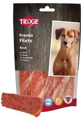 PREMIO Filets, marhahús filék - 93% hús, 80 g, puha finomság, jutalomfalat kutyáknak magas marhahús tartalom - 93% gluténmentes recept 0% hozzáadott cukorSúly: 80 g Összetevők: marhahús (93%), borsókeményítő, glicerin, szójafehérje, ásványi anyagok Analitikai összetétel: zsírtartalom 6,0%, nedvességtartalom 18,0%, fehérjetartalom 49,0%, nyershamu 5,0%, nyersrost 1,0 Tárol
