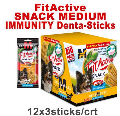 FitActive Denta-Sticks Hypoallergenic Immunity "M" - jutalomfalat (vörösáfonya, kurkuma) kutyák részére (12dbx150g/#) A Denta-Stick Cranberry rendszeres rágása - rágás általi fogtisztítás - csökkentheti kutyája fogkő lerakódásának mértékét. Fogváltás előtt álló kölyökkutyák számára nem ajánlott, 4 hónapnál fiatalabb kölyöknek nem adható.