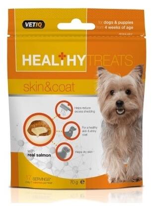 A Mark&Chappell Healthy Treats Skin and Coat jutalomfalatok omega-3 zsírsavakat és esszenciális vitaminokat tartalmaznak, amelyek egészséges bőrt és szőrzetet biztosítanak kedvence számára. Felhasználási útmutató: - Kistestű kutyának (5 kg) napi 2 falat - Közepes testű kutyáknak (10 kg) napi 3 falat - Nagytestű kutyáknak (20 kg) napi 4 falat adható. Összetétel: Búzali