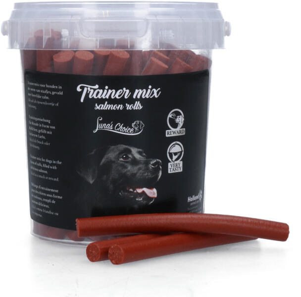 KÉPZÉSI/EDZÉSI JUTALOMFALAT MIX LAZAC TEKERCSEK, 500G Ezek a rudak finom lazaccal van töltve, és fél-nedves lágy jutalom a könnyű fogyaszthatóság érdekében. Ez azt jelenti, hogy ezek a falatok még mindig kissé nedvesek, és ezért rendkívül erőteljesek az ízük és az illatuk. Ez a rúd egy ízletes finomság kutyádnak, és kis darabokra is fel lehet törni használatra jutalom