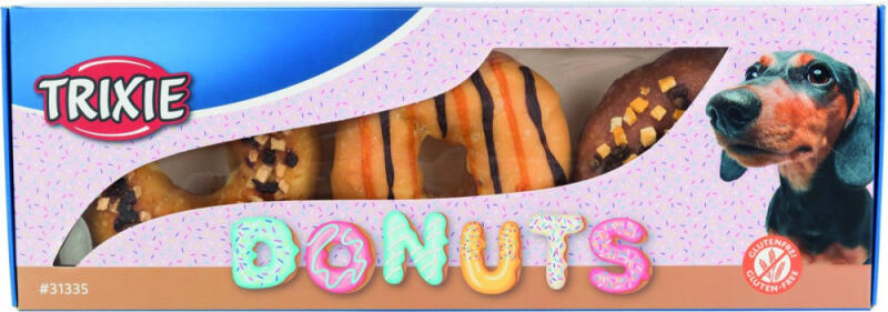 Jutalomfalat fánkocskák kutyák részére 3 különböző ízű nyersbőr rágógyűrű : kacsával, sütőtökkel és banánnal tőkehallal, eperrel és almával csirkével (10cm/3x100g)