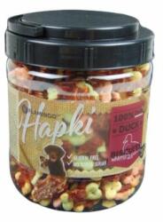 Kiegészítő állateledel kutyáknak. Jellemzők : - Egy finom, egészséges harapnivaló kutyák számára. - Gluténmentes, hozzáadott cukrot nem tartalmaz. - 100% -ban ízletes, kutyája imádni fogja. Alkalmazási útmutató :- Mindig biztosítson friss ivóvizet kutyájának. - Naponta adható mennyiség: 20 kg max 10 db. Összetétel : Kacsa (42,7%), búzaliszt (32%), cukor (3,2%), szójab