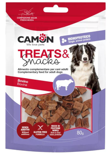 Monoproteines marha kockák 80 gramm. Marha kockák- Adalék és gluténmentes, proteinben gazdag étrendkiegészítő felnőtt kutyák részére. Összetevők: marhahús (szarvasmarhahús) 45%, állati melléktermékek (szarvasmarha) 43%, szója (bab) fehérjekoncentrátum, glicerin (növényi), nátrium-klorid. ANALITIKAI ÖSSZETEVŐK: Nyersfehérje 33,66% - Nyersrost 0,1% - Nyerszsír 2,5% - Ny