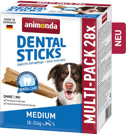 Animonda Multipack Dental Sticks (húsos) jutalomfalat - 11-25kg kutyák részére (4x180g)Az animonda ® Denta-stix finom fogtisztító felnőtt kutyák részére. A Stay-C ® hatóanyagot tartalmazzák , amely megakadályozza a fogkő képződését a C-vitamin segítségével. A napi használattal csökkenthető a plakkképző baktériumok növekedése és a fogkő. Gyártva Németországban.