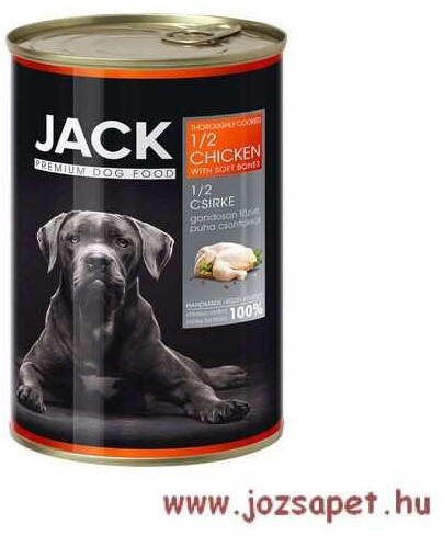JACK KUTYAKONZERV 1/2 CSIRKÉVEL 1,2 kg 100% csirkehús! Természetes ásványi anyagokat és vitaminokat tartalmaz. Rendkívül jól emészthető! Kutyája imádni fogja! Prémium minőségű kutyakonzerv, melyeknek íze és látványa egyedülálló. 100% csirkehús! Súly: 1.2 kg Teljes értékű, könnyen emészthető prémium minőségű kutyaeledel, mely természetes ásványi anyagokat, vit