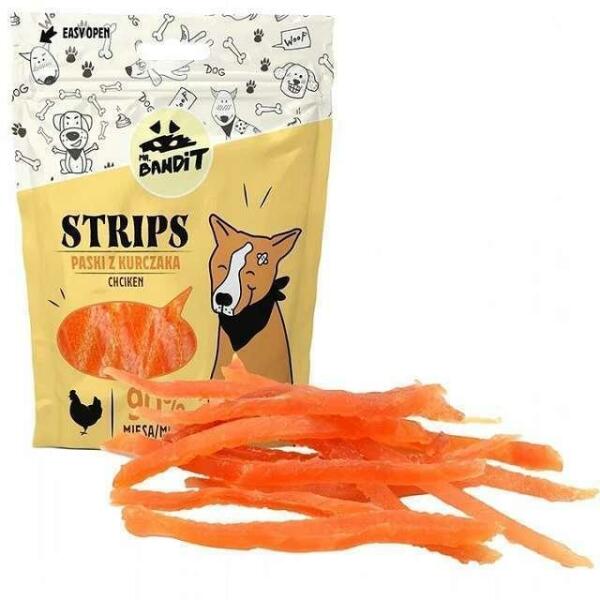 Mr. Bandit STRIPS csirkeMr. Bandit húsos falat az édes bajkeverőnek! Veszélyesen finom, minden kisállat szívét elrabolja! LeírásSzuper puha rágcsálnivaló kutya bajkeverőknek! A könnyű csirkemell tökéletes az igényes csibészeknek. Finom és puha csemege, amit minden kutya imád. Összetételcsirkemell 90%, glicerin, mogyorófehérje, Adalékanyagok: tartósítószer. Analitikai