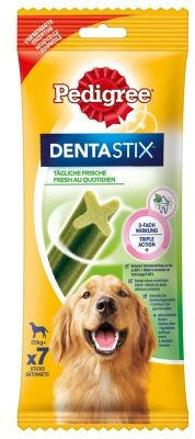 Fogápoló jutalomfalat eukaliptusszal és zöld tea kivonattal a rossz leheletért, speciális textúrája és hatóanyagai tisztítják a fogakat, csökkenti a fogkő-és lepedékképződést és a rossz leheletet. Nagytermetű kutyáknak. A napi fogápolás a kutyák esetében is különösen fontos. A Pedigree Dentastix Fresh gondoskodik róla, hogy kutyája fogai és ínye erős és egészsé