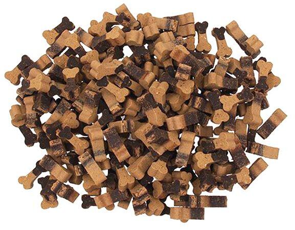 RASCO táplálék kiegészítő kutyák számára - csont alakú baromfi hús ízesítéssel és májjal. Összetevők: gabona, hús és állati eredetű melléktermékek (min. 4% baromfi, máj), cukrok, zsírok és olajok, szárított savó, növényi eredetű melléktermékek. Analitikus összetevők: 12,5 % nyers fehérje, 6% nyers olajok és zsírok, 10,5 % nedvesség 5,7 % nyershamu, 1,1 % ny