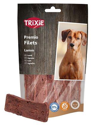 PREMIO Filets, bárány filék - 93% hús, 80 g, puha csemege, jutalomfalat kutyáknak magas bárányhús tartalom - 93% gluténmentes recept 0% hozzáadott cukorSúly: 80 g Összetevők: bárányhús (93%), borsókeményítő, glicerin, szójafehérje, ásványi anyagok Analitikai összetétel: zsírtartalom 15,0%, nedvességtartalom 18,0%, fehérjetartalom 42,0%, nyershamu 4,6, nyersrost 0,6 Tá
