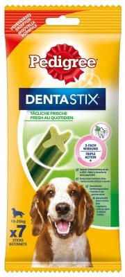 Fogápoló jutalomfalat eukaliptusszal és zöld tea kivonattal a rossz leheletért, speciális textúrája és hatóanyagai tisztítják a fogakat, csökkenti a fogkő-és lepedékképződést és a rossz leheletet. Közepes termetű kutyáknak. A napi fogápolás a kutyák esetében is különösen fontos. A Pedigree Dentastix Fresh gondoskodik róla, hogy kutyája fogai és ínye erős és egé