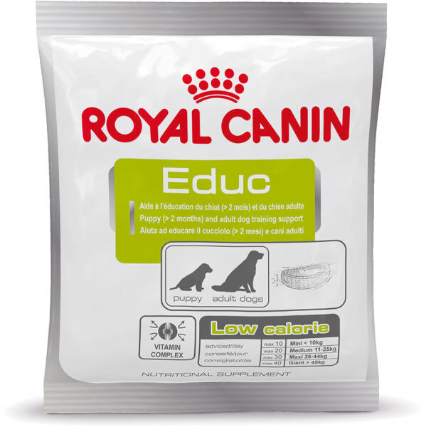 A zooplus. hu kínálatából: A Royal Canin Nutritional Supplement Educ jutalomfalatja a szokványos snackek kalóriaszegény alternatíváját kínálja. A Royal Canin Educ speciálisan megtervezett kutyasnack, amely ideálisan használható neveléshez és tréninghez. A jutalomfalat különösen gazdag vitaminokban, ellenben alacsony a kalóriatartalma ( 3 kcal/darab). Speciális receptúráj