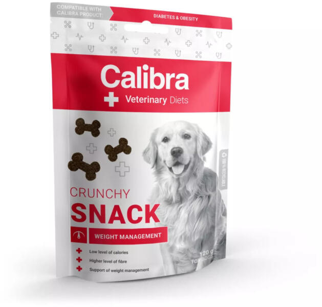 Ropogós funkcionális falatok túlsúlyos és diabétesz mellitusz-ban szenvedő felnőtt kutyák számára. Nem helyettesíti a megfelelően kialakított teljes értékű állateledelt a glükózellátás szabályozására. A Calibra VD Diabetes & Obesity állateledellel kompatibilis. Összetétel: csirkefehérje (24 %), borsó (21 %), friss csirke (14 %), lignocellulóz (14 %), borsófehér