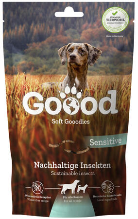 A Goood Soft Snack egy prémium minőségű puha, gabona- és csirkementes, rovarfehérjés jutalomfalat felnőtt kutyáknak. A jutalomfalat a kutya kiképzésében elengedhetetlen eszköze és erősítik a kutya-gazdi kötődést.