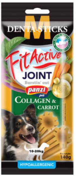 A FitActive Hypoallergenic Denta-Sticks Joints Collagen & Carrot ízletes fogápoló rudak rágása jelentősen csökkenthetik a fogkőképződést, tisztítják a nehezen elérhető fogakat, így hozzájárulnak a fogíny egészségéhez. Összetételük (kollagén és sárgarépa) révén pedig támogatják kutyánk egészséges emésztésének fenntartását. Napi szájápolás és emészt