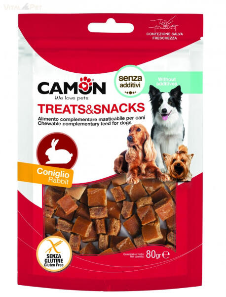 Nyulas kockák 1x1 cm- Glutén és adalékmentes jutalomfalat kutyák számára. Nettó 80 gramm Összetétel: nyúlhús 91%, borsófehérje, kukoricakeményítő, glicerin, szorbitol. Használati útmutató: 4 hónapnál fiatalabb kutyák számára nem ajánlott. Ajánlott napi fogyasztási mennyiség: 1-20 db (1db 0,6 gr), az eb mérete alapján határozza meg a mennyiséget. Analitikai összete