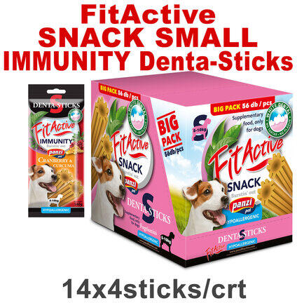 1.96kg A FitActive Hypoallergenic Denta-Sticks Immunity Cranberry & Curcuma ízletes rágórudak jelentősen csökkenthetik a fogkőképződést, tisztítják a nehezen elérhető fogakat, így hozzájárulnak a fogíny egészségéhez. Vitaminos és gyógynövényes összetételük (áfonya és kurkuma) révén pedig támogatják kutyánk immunrendszerének fenntartását. Napi szájápolás