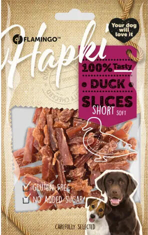 Kiegészítő állateledel kutyáknak Kiegészítő állateledel kutyáknak Jellemzők : Szárított kacsás csíkok kutyáknak. Gluténmentes, hozzáadott cukrot nem tartalmaz. Alkalmazási útmutató : 0-6 hónapos korig nem adható. Mindig biztosítson friss ivóvizet kutyájának. Összetétel : Kacsa (87,8%), glicerin (4%), keményítő (3%), növényi fehérje (3%), szorbitol (2%), só (0,2%