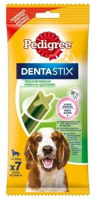 Fogápoló jutalomfalat eukaliptusszal és zöld tea kivonattal a rossz leheletért, speciális textúrája és hatóanyagai tisztítják a fogakat, csökkenti a fogkő-és lepedékképződést és a rossz leheletet. Közepes termetű kutyáknak. A napi fogápolás a kutyák esetében is különösen fontos. A Pedigree Dentastix Fresh gondoskodik róla, hogy kutyája fogai és ínye erős és egé