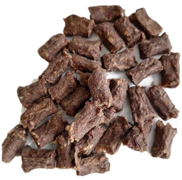 Ízletes snack tréninghez, gyors jutalmazáshoz. Kicsik (kb. 1-1,5 cm), nem zsíroz, így könnyedén behelyezhető a zsebbe a képzés alatt. A tréning harapnivalók 98% húsból állnak, 1,5% almarost, 0,5% tengerisó. Ez a termék 100%-ban természetes és minden adalékanyagtól mentes. Összetevők: Nyersfehérje: 53,8%, Nyerszsír: 31,7%, Nyershamu: 3,7%, Nyersrost: 4,1%, Nedvesség: 5,6%