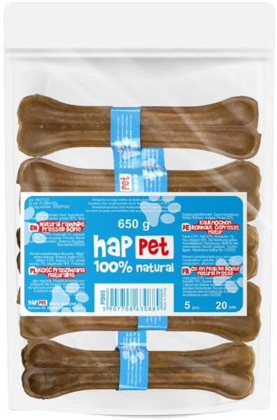 Hosszúság: 20 cm Összetétel: szárított marhabőr. Analitikai összetevők: fehérje 82% rost 0,5% zsír 0,5% nyershamu 1% nedvesség 18%. Nyersbőr Préselt csont / Natural Kutyáknak A Happet csontok egy speciális masszából készülnek, amelyet túlsütött marhabőrből készítenek, majd megszárítják és valódi csont alakúra préselik. Ezeknek az eljárásoknak köszönhetően a f