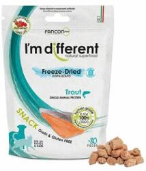 I´M DIFFERENT SNACK pisztráng - fagyasztva szárított csemege, 40 g, A forradalmian új, lassú eljárással készült fagyasztva szárított (fagyasztva szárított) monoprotein finomság megőrzi a "RAW" összetevők összes tápértékét, ízét és frissességét főzés nélkül, így az étel egészségesebb, ízletesebb és emészthetőbb lesz. a finomság kiváló ízletessége a friss
