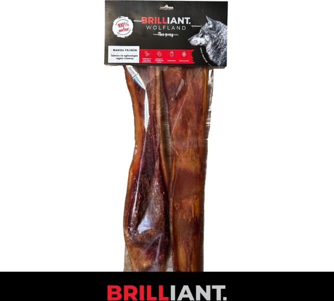 A Brilliant Wolfland jutalomfalatai közül a marhafejbőr, extra kemény, amely úgy viselkedik mint egy természetes fogkefe, erősíti a rágóizmokat, tisztítja a fogakat és masszírozza a fogínyt. Finoman szárított marhabőrünk extra adag fehérjét és értékes nyers zsírt biztosít a kutyáknak . Ezzel a termékkel nem csak kiváló és hosszan tartó elfoglaltságot okoz Kedvencén