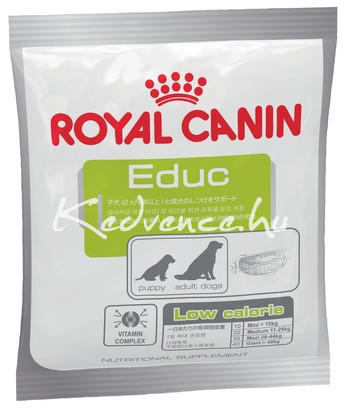 Jutalomfalat kölyök vagy felnőtt kutyának Neveléséhez és tréningezéskor ajánlott Royal Canin Educ 50 Jutalomfalat 30x50g Royal Canin alacsony kalóriatartalmú kutya snack és étrend-kiegészítő. Az Educ jutalomfalat egyesíti magában a limitált kalóriafelvételből (kevesebb, mint 3 kcal/db) és az optimális ízletességből adódó előnyöket. Jellemzői: Kölyök vagy felnőtt