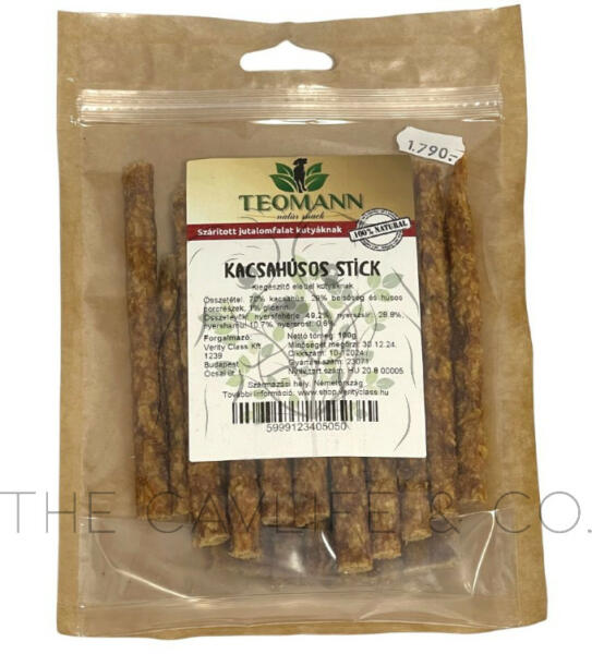99% kacsa. 100g kb. 18-20 sticket tartalmaz. Összetevők: 70% kacsahús, 29% belsőség és húsos porcrészek, 1% glicerin. Analitika: nyersfehérje 49,2%, nyerszsír: 28,8%, nyershamu: 10,7%, nyersrost: 0,6%.