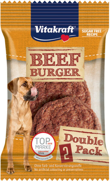 A zooplus. hu kínálatából: A Vitakraft finom Beef Burgere úgy néz ki, mint egy kis hamburger, azonban ez a burger kifejezetten kutyáknak való. Egy csomagban egyből két tallért kap, melyek pompás húsos ízükkel csábítják a kutyusokat. S bizony, alig akad kutya, amely ennek ellen tudna állni! A Vitakraft snackje tökéletes jutalomfalat, két étkezés közötti finomság, kiváló