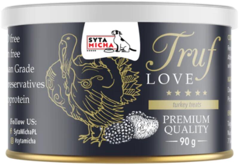 TrufLOVE a Syta Micha-tól – „Mert minden kutya megérdemel egy csipetnyi luxust. Egészséges jutalomfal atok pulykával és szarvasgombával– egyedülálló nassolnivaló páratlan összetétellel és egészségre gyakorolt jótékony hatású tápanyagokkal. A TrufLOVE egy monoprotein finomság kutyáknak, friss húsból, zöldségekből, fűszernövényekből és nyári szarvasgombából