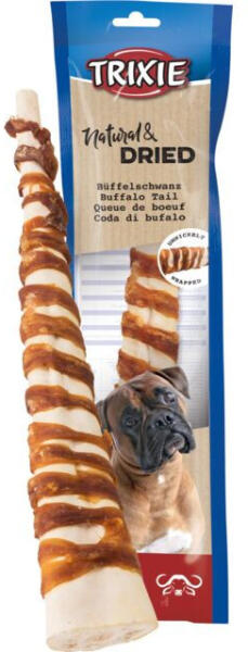 Szárított bivalyfarok jutalomfalat kutyák részére, bivalyhúsba csomagolva Monoprotein snackként különösen alkalmas takarmányallergiás állatok számára Mérete: 28-30cm Összetétel: bivalyfarok, bivalyhús (30 %)