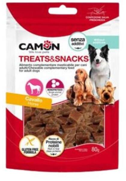 C amon Treats&Snacks füstölt lovasjutalomfala t gluténmentes jutalomfalat, mely egyetlen állati fehérjét tartalmaz, a lóhúst. A mini kis kockák a kisebb testű kutyusoknak is ideális választás. Tréningezéshez is használható falatkák, visszazárható csomagolásban. A lóhús alacsony kalória tartalmú. Aminosav és fehérjetartalma kiegyensúlyozott. Ásványi anyagokban gazd