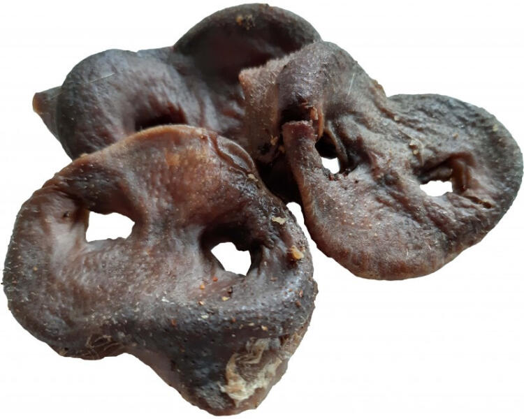 Tápláló és könnyen emészthető snack kis és közepes méretű kutyáknak. Ízletes, rágásnak jól ellenálló finomság. Tisztítja, ápolja a fogakat. Segít eltávolítani a lepedéket, masszírozza a fogínyt, így megelőzi a fogkőképződést. 100% -ban természeteshús , színezékek és tartósítószerek hozzáadás nélkül. 125g : kb. 6-7db orr. Összetevők: Nyersfehérje: 67,